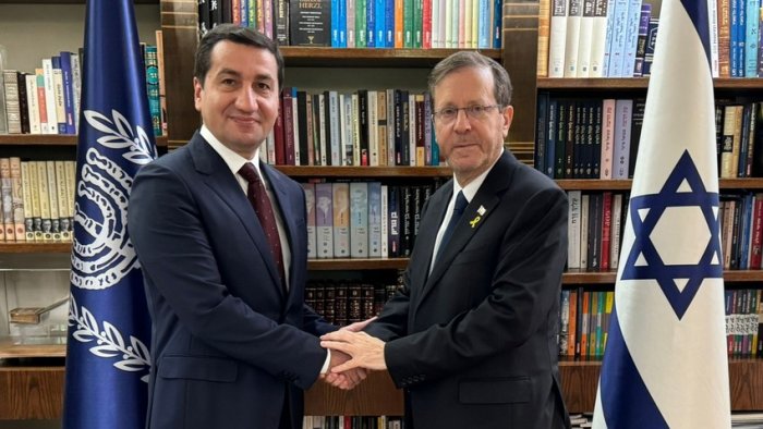 Azərbaycan Respublikası Prezidentinin köməkçisi - Prezident Administrasiyasının Xarici siyasət məsələləri şöbəsinin müdiri Hikmət Hacıyev İsrail Prezidenti İsaak Hersoqla görüşüb.