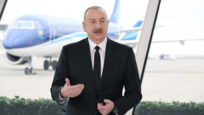 Məhz bunun nəticəsində füzelyajın bir hissəsi yanmayıb və məhz bunun nəticəsində bu gün biz tam açıq-aydın deyə bilərik ki, təyyarə Rusiya tərəfindən vuruldu”, - deyə dövlətimizin başçısı qeyd edib.