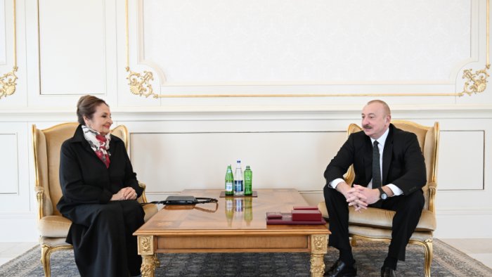 Prezident İlham Əliyev “İstiqlal” ordenini Şəfiqə Məmmədovaya təqdim etdi.