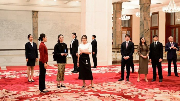 Aprelin 23-də Azərbaycan Respublikasının birinci xanımı Mehriban Əliyeva, qızı Leyla Əliyeva və digər ailə üzvləri Pekində Böyük Xalq Sarayı ilə tanış olublar.