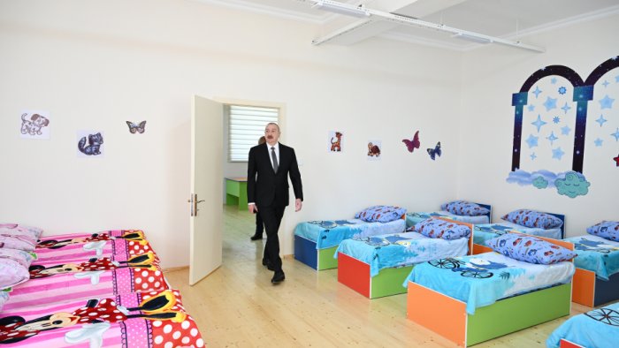 Bizim.Media-nın məlumatına görə, dövlət başçısına məlumat verilib ki, müasir standartlara uyğun inşa edilmiş 120 yerlik körpələr evi-uşaq bağçasında azyaşlıların təlim-tərbiyəsi ilə məşğul olmaq, onların sağlam mənəvi və fiziki mühitdə yetişmələri üçün hər cür şərait var.