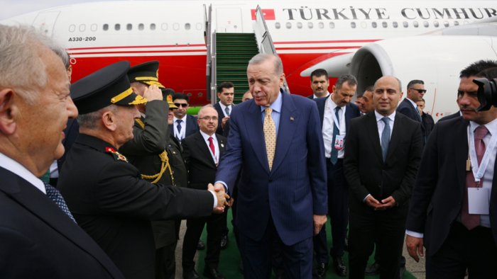 Türkiyə Prezidenti Rəcəb Tayyib Ərdoğanı hava limanında Azərbaycanın elm və təhsil naziri Emin Əmrullayev və digər rəsmi şəxslər qarşılayıblar.