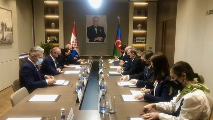 Bizim.Media xəbər verir ki, C.Bayramov xorvatiyalı həmkarını Xarici İşlər Nazirliyinin binası önündə qarşılayıb. Sonra nazirlər arasında təkbətək görüş olub.