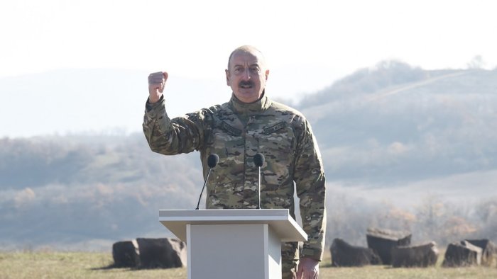 Bundan sonra Qarabağda və Zəngəzurda əbədi yaşayacağıq. Əgər Ermənistanda hər hansı bir qüvvə bizə xor baxsa, hansısa revanşist meyillərə əl atsa, bizim yumruğumuzu görəcəkdir. Bizim yumruğumuz yerindədir”, deyə İlham Əliyev qeyd edib.