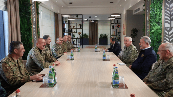 Azərbaycan Prezidenti, Silahlı Qüvvələrin Ali Baş Komandanı İlham Əliyev Şuşada Türkiyənin milli müdafiə naziri Hulusi Akarın başçılıq etdiyi nümayəndə heyətini qəbul edib.
