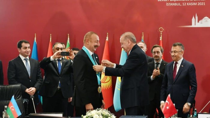 Türkdilli Dövlətlərin Əməkdaşlıq Şurasının noyabrın 12-sində baş tutan VIII Zirvə Görüşündə Türkiyə Respublikasının Prezidenti Rəcəb Tayyib Ərdoğan İlham Əliyevə Türk Dünyasının Ali Ordenini təqdim edib.