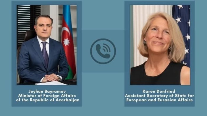 Bu gün xarici işlər naziri Ceyhun Bayramovun ABŞ Dövlət Katibinin Avropa və Avrasiya məsələləri üzrə köməkçisi Karen Donfrid ilə telefon danışığı baş tutub.