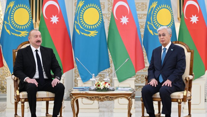Əvvəlcə qardaş Qazaxıstana dövlət səfərinə dəvətinizə, həmçinin qonaqpərvərliyə görə təşəkkürümü bildirmək istərdim. Azərbaycanın ünvanına söylədiyiniz xoş sözlərə görə sağ olun. Biz qardaş Qazaxıstan xalqına münasibətdə də eyni hissləri bölüşürük.