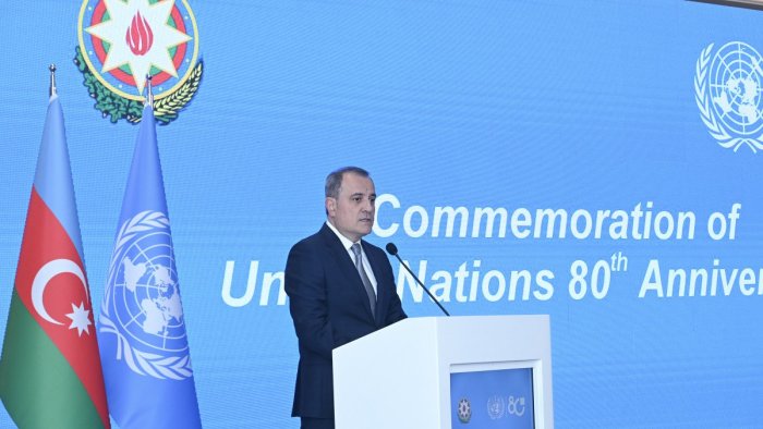 Nazir Ceyhun Bayramov çıxışında BMT-nin çoxtərəfli diplomatiyanın əsas dayaqlarından biri kimi mühüm rolunu vurğulayaraq, təşkilatın 80 illiyi münasibətilə təbriklərini çatdırıb.