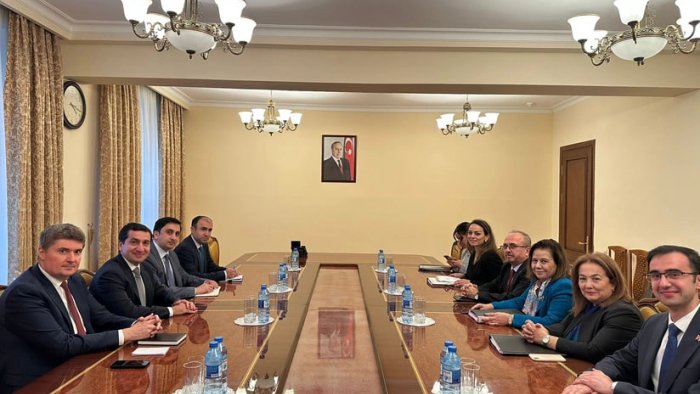 Türkiyənin ölkəmizdə səfərdə olan xarici işlər nazirinin müavini Ayşe Berris Ekinci Azərbaycan Prezidentinin köməkçisi – Prezident Administrasiyasının Xarici siyasət məsələləri şöbəsinin müdiri Hikmət Hacıyev və Prezidentin xüsusi tapşırıqlar üzrə nümayəndəsi Xələf Xələfovla görüşüb.