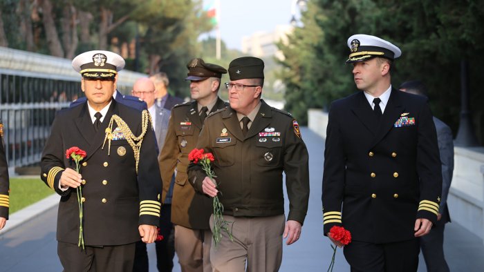 “ABŞ-ın Avropa Komandanlığının (EUCOM) Tərəfdaşlıq, Təhlükəsizlik, Əməkdaşlıq və Kütləvi Qırğın Silahlarının Qarşısının Alınması üzrə direktor müavini, briqada generalı Kris Makkininin rəhbərlik etdiyi nümayəndə heyəti Azərbaycan Müdafiə Nazirliyinin əməkdaşları ilə birgə vətən uğrunda canlarını qurban verənlərin xatirəsini ehtiramla anmaq üçün Şəhidlər xiyabanını ziyarət edib”, - məlumatda qeyd olunub.