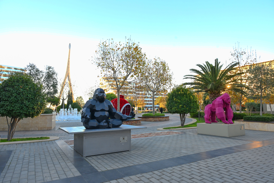 Prezident İlham Əliyev, birinci xanım Mehriban Əliyeva və qızları əvvəlcə "Qarabağ atları" heykəltaraşlıq kompleksi ilə tanış olublar. Vətən müharibəsindəki Qələbəmizə həsr edilmiş və milli irsimizin rəmzi olan bu kompleks "Qarabağ atları" meydanında ucaldılıb.
