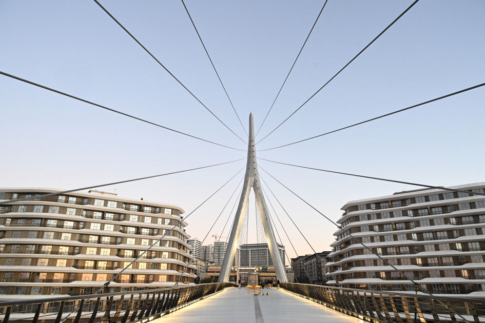 Dövlət başçısı, birinci xanım və qızları "Bakı Ağ Şəhər"də Zaman meydanı və buradakı piyada körpüsünün açılışında da iştirak ediblər.