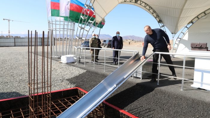 Prezident İlham Əliyev otelin təməlini qoyub.