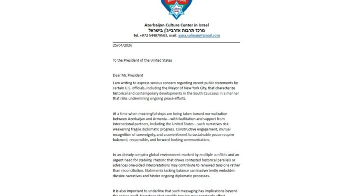 Məktublarda Nyu York merinin Azərbaycan xalqına qarşı səsləndirdiyi ittihamlarla bağlı ciddi narahatlıq ifadə edilib.