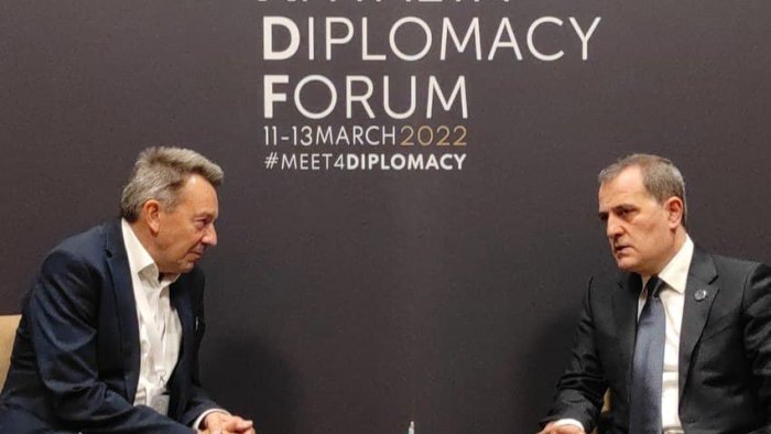 Antalya Diplomatiya Forumunda iştirakı çərçivəsində nazir Ceyhun Bayramov Beynəlxalq Qırmızı Xaç Komitəsinin prezidenti Peter Maurer ilə görüşüb.