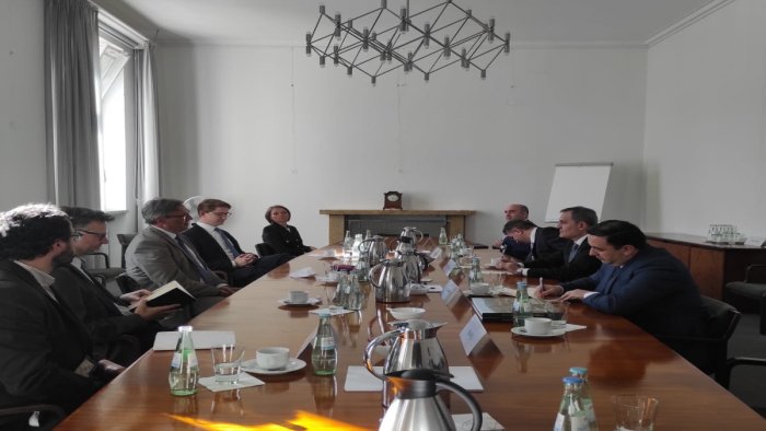 Bu gün Almaniyaya işgüzar səfəri çərçivəsində xarici işlər naziri Ceyhun Bayramov Almaniya Federativ Respublikasının Elm və Siyasət Fondunun Alman Beynəlxalq siyasət və Təhlükəsizlik İnstitunun direktoru Ştefan Mayer və İnstitun elmi tədqiqatçıları ilə dəyirmi masa formatında görüşüb.