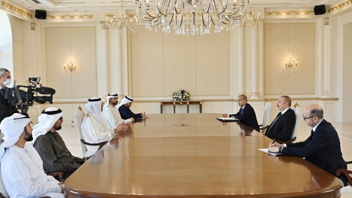 Qonaq vurğulayıb ki, Məhəmməd bin Zayed Əl Nahyan ölkələrimiz arasında münasibətlərdə əldə edilmiş inkişafı yüksək qiymətləndirir, bu əlaqələrin önəmini xüsusi qeyd edir və tərəfdaşlığımızın daha da gücləndirilməsi əzmindədir.