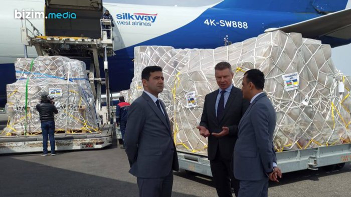 Humanitar yükü Varşava hava limanına çatdırmaq üçün ilk təyyarə 21 aprel saat 14:30-da Ukraynanın ölkəmizdəki səfirinin iştirakı ilə Heydər Əliyev adına Beynəlxalq Hava Limanından yola salınıb.