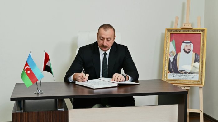Azərbaycan Respublikasının Prezidenti İlham Əliyev mayın 16-da Birləşmiş Ərəb Əmirliklərinin (BƏƏ) ölkəmizdəki səfirliyində olub, görkəmli dövlət xadimi, Birləşmiş Ərəb Əmirliklərinin Prezidenti Şeyx Xəlifə bin Zayed Al Nəhyanın vəfatı ilə əlaqədar başsağlığı verib.