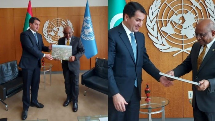 Azərbaycan Prezidentinin köməkçisi - Prezident Administrasiyası Xarici əlaqələr şöbəsinin müdiri Hikmət Hacıyev BMT Baş Assambleyasının sədri Abdulla Şahidlə görüşüb.