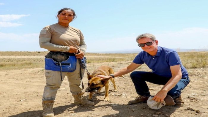 “Bu mina aşkarlayan it idarəçisi Mariadır. O, Azərbaycanda minatəmizləmə komandasında yeganə qadındır. Tezliklə Britaniya-Azərbaycan əməkdaşlığı nəticəsində Azərbaycanda daha çox qadın minatəmizləmə qrupları olacaq. Onlar bu torpaqlara qayıdan insanların təhlükəsizliyinə mühüm töhfələr verəcək”, - deyə səfir qeyd edib.