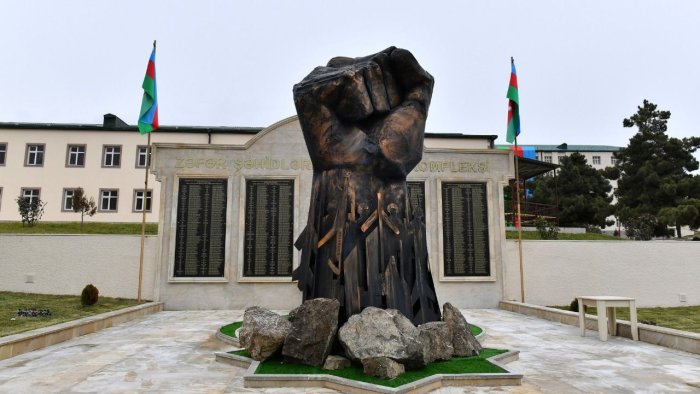 “Dəmir yumruq” heykəli artıq Laçın şəhərinə gətirilib. Bu heykəl 44 günlük müharibənin birlik rəmzi sayılır.