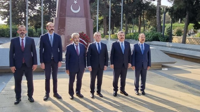 Əvvəlcə Türkiyə nümayəndə heyəti Azərbaycan Respublikasının səhiyyə naziri Teymur Musayevlə birlikdə Fəxri xiyabana gələrək, xalqımızın ümummilli lideri, müasir müstəqil Azərbaycan dövlətinin memarı və qurucusu Heydər Əliyevin xatirəsini ehtiramla yad edərək məzarı önünə əklil qoyulub.