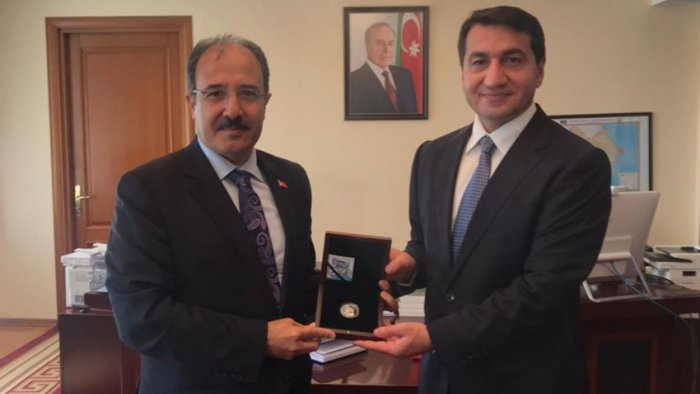 Türkiyənin Azərbaycandakı səfiri Cahit Bağçı Azərbaycan Prezidentinin köməkçisi - Prezident Administrasiyasının Xarici siyasət məsələləri şöbəsinin müdiri Hikmət Hacıyevlə görüşüb.