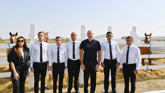 Dövlət başçısı və birinci xanım atlara baxış keçiriblər.