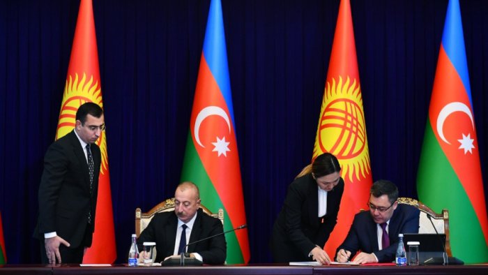 Bizim.Media xəbər verir ki, “Azərbaycan Respublikası və Qırğız Respublikası arasında Birinci Dövlətlərarası Şuranın iclasının Qərar”ını Azərbaycan Respublikasının Prezidenti İlham Əliyev və Qırğız Respublikasının Prezidenti Sadır Japarov imzalayıblar.