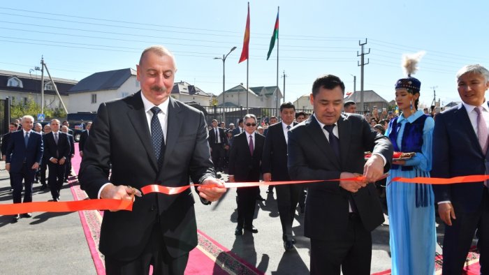 Bizim.Media xəbər verir ki, Azərbaycan Respublikasının Prezidenti İlham Əliyev və Qırğız Respublikasının Prezidenti Sadır Japarov açılış mərasimində iştirak ediblər.